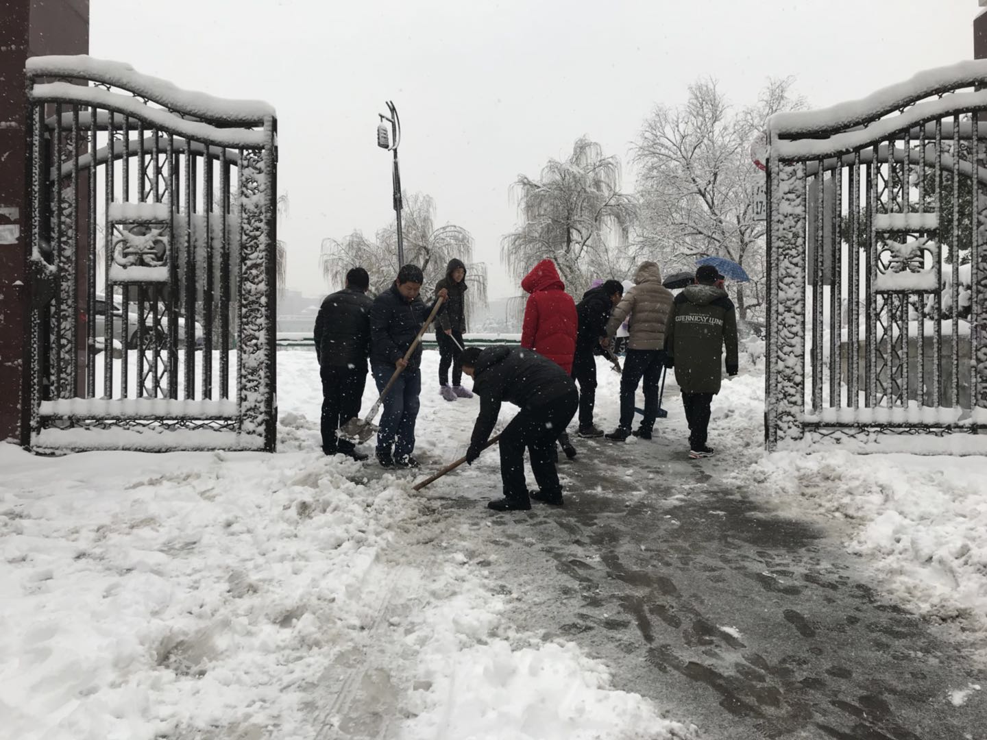 經(jīng)過一個多小時的奮戰(zhàn),大家終于將公司的主要入口、主干道等地的積雪全部鏟除,為員工和來訪客人開辟了一條洋溢著溫情的通暢之路。雖然大家的衣服、鞋子都弄濕了,也出了一身的汗,可看著眼前的成果,大家都很有成就感,每個人的臉上都洋溢著開心的笑容。